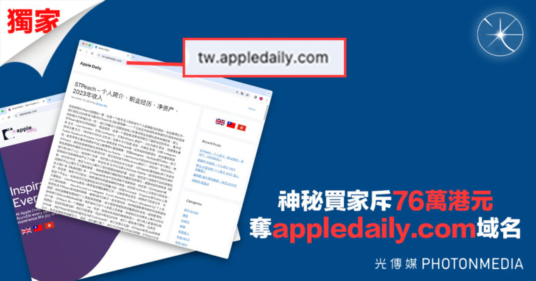 《光傳媒》早前報道,《蘋果日報》的域名…