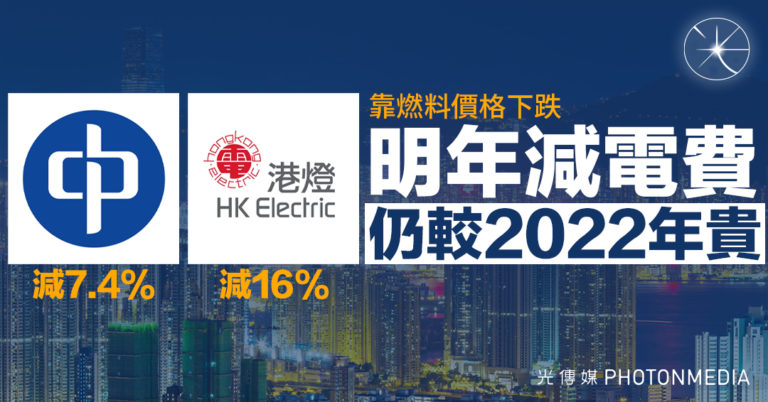 靠燃料價格下跌 明年電費中電減7.4% 港燈減16% 仍較2022年貴
