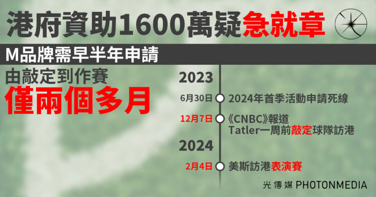 港府資助1600萬疑急就章 M品牌需早半年申請 Tatler兩個月前才敲定球隊訪港