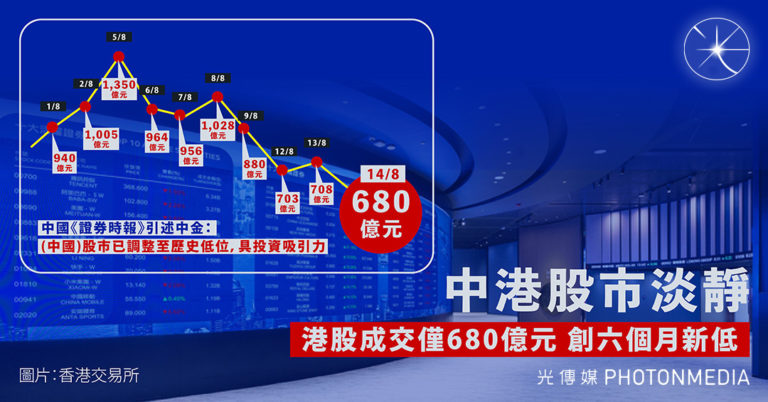 中港股市淡靜 港股成交僅680億元 創六個月新低
