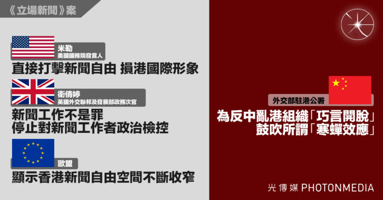 立場新聞案|英、美、歐盟指判決嚴重打擊新聞自由 外交部駐港公署反駁西方政客顛倒黑白