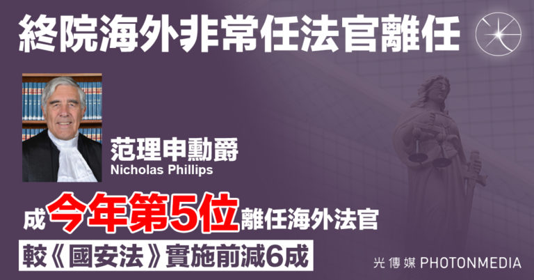 終院海外非常任法官范理申離任 成今年第5位離任海外法官 較《國安法》實施前減6成】