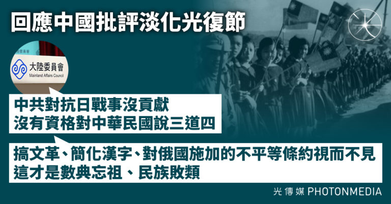 回應中國批評淡化光復節 台陸委會:中共對抗日戰事沒貢獻 沒有資格對中華民國說三道四