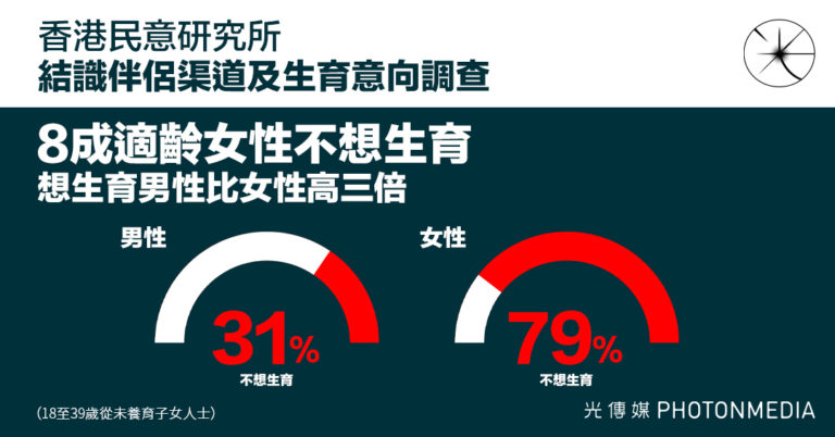 香港民研|8成適齡女性不想生育 公屋戶僅2%想生 20至49歲單身人士33%「A0」