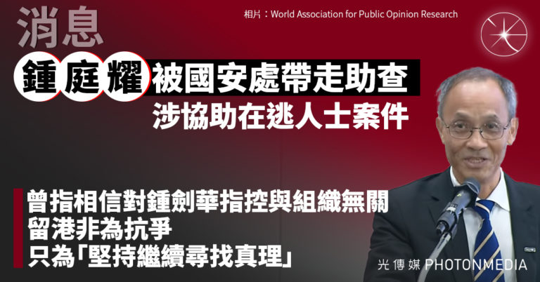 消息:鍾庭耀被國安處帶走助查 涉協助在逃人士案件