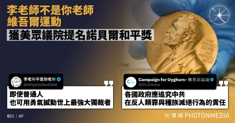 「李老師不是你老師」和「維吾爾運動」獲美眾議院提名諾貝爾和平獎