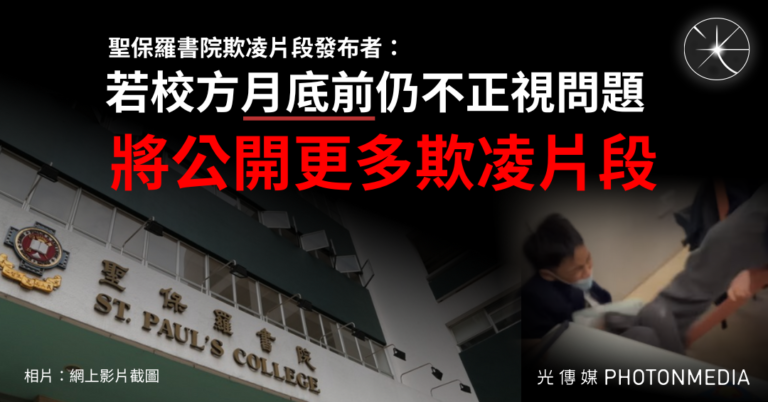 聖保羅書院欺凌片段發布者:若校方月底前仍不正視問題 將公開更多欺凌片段