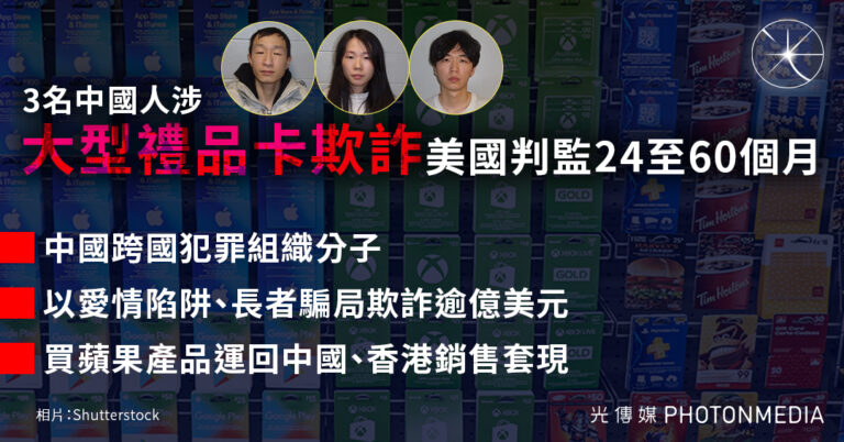 3名中國人涉大型禮品卡欺詐 美國判監24至60個月
