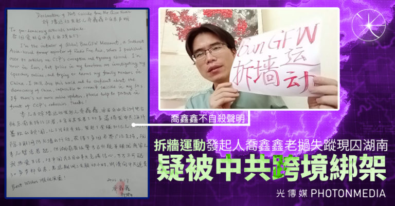 「拆牆運動」發起人喬鑫鑫老撾失蹤現囚湖南 疑被中共跨境綁架