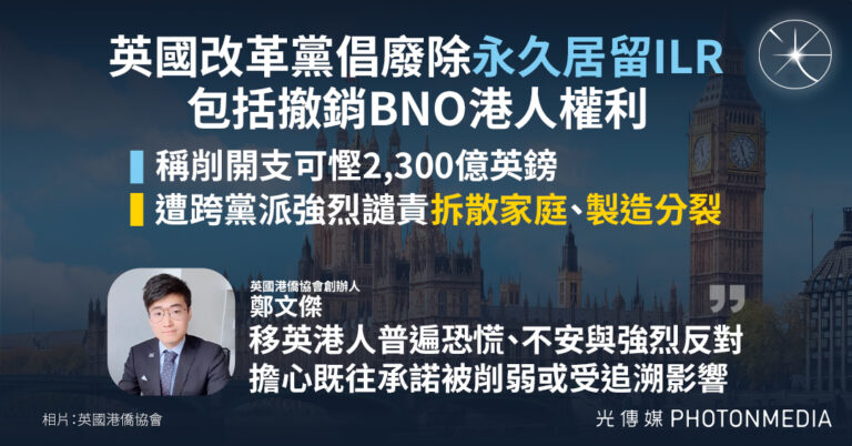 英國改革黨昨(22日)提倡,廢除「永久居…