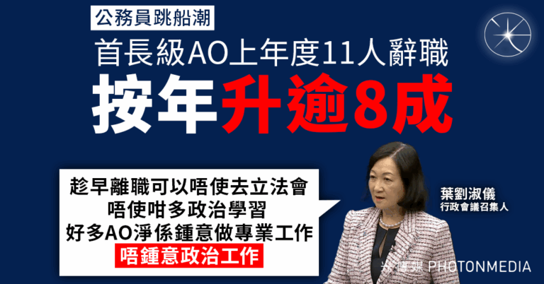 跳船潮|首長級AO上年度11人辭職 按年升逾8成 葉劉淑儀:部分AO不適應亦不喜歡政治工作