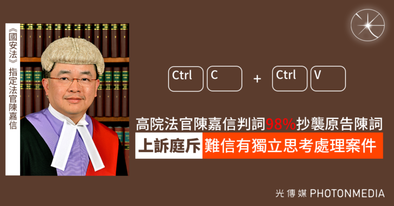 高院法官陳嘉信判詞98%抄襲原告陳詞 上訴庭斥:難信有獨立思考處理案件