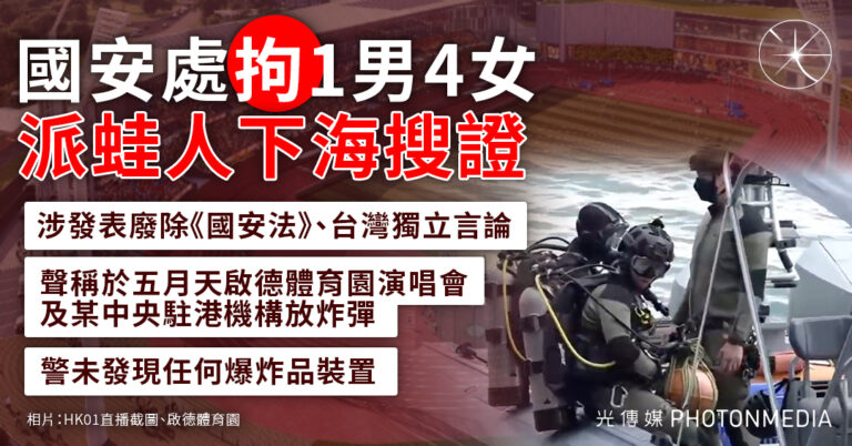 國安處昨(2日)拘捕1男4女,涉嫌發表廢除…