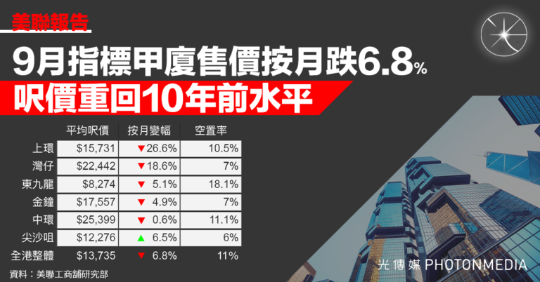 本港寫字樓租金和售價持續下跌,根據美聯…
