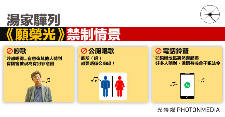 願榮光遭禁制 湯家驊:哼都唔得 廁所唱都要唔係公廁