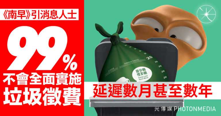 《南早》引消息人士:99%不會全面實施垃圾徵費 延遲數月甚至數年
