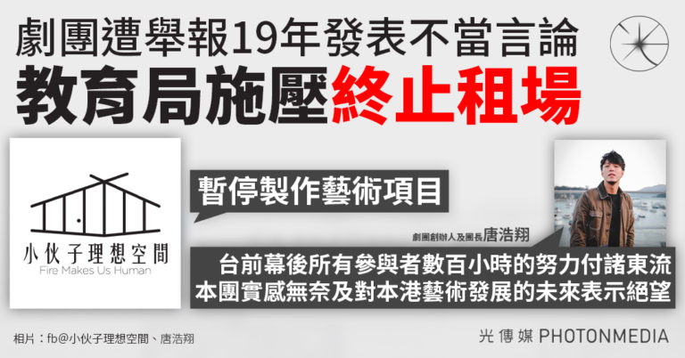 香港劇團「小伙子理想空間」的團員遭舉報…