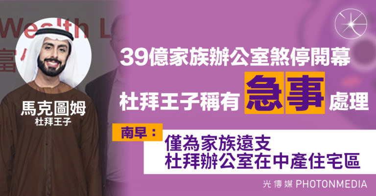 39億家族辦公室煞停開幕 杜拜王子稱有「急事」處理 《南早》引消息:僅為家族遠支