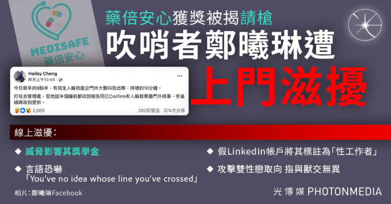 名校女生研發AI配藥平台「藥倍安心」獲獎被揭「請槍」吹哨者鄭曦琳被人上門滋擾