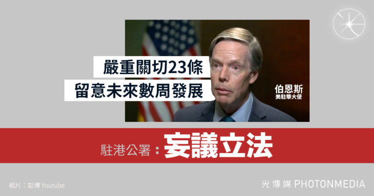 美駐華大使伯恩斯:嚴重關切23條 留意未來數周發展 駐港公署:妄議立法