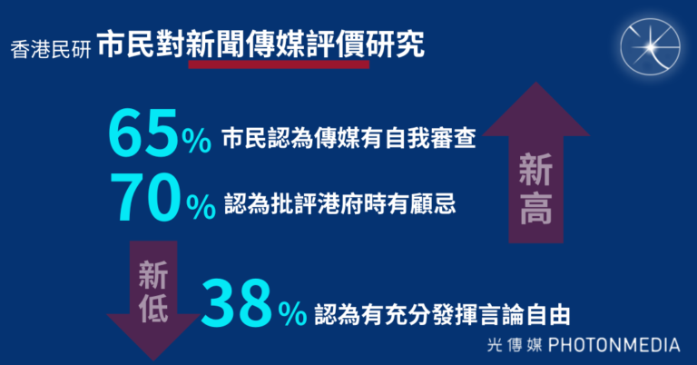 香港民研|65%巿民認為傳媒有自我審查 70%認為「批評港府時有顧忌」 創1997以來新高