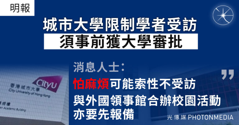 《明報》︱城市大學限制學者受訪 須事前獲大學審批 外國領事人員到校亦要先報備