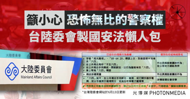 籲提防「恐怖無比的警察權」〡台陸委會製國安法懶人包