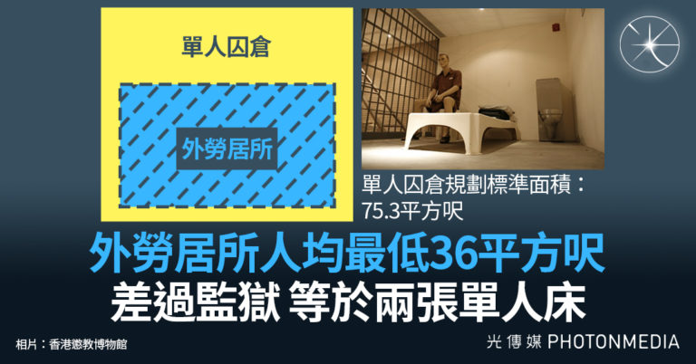 外勞居所人均面積最低36平方呎 差過監獄 等於兩張單人床