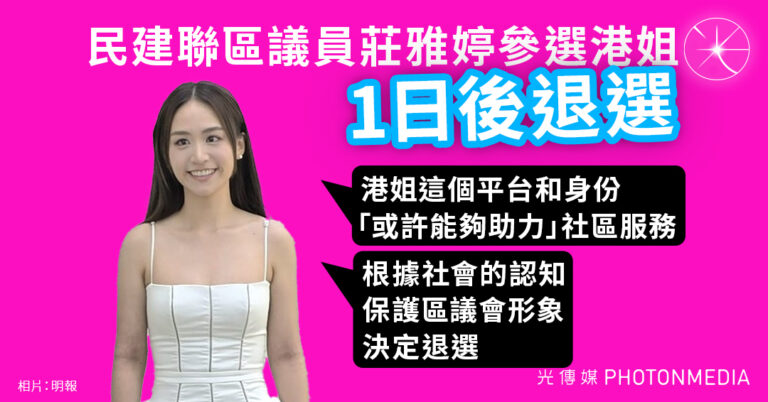 民建聯區議員莊雅婷參選港姐 1日後稱為保區會形象退選