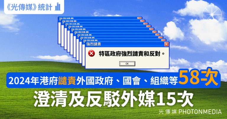 《光傳媒》統計|2024年港府「譴責」外國政府、國會、組織等58次 澄清及反駁外媒15次
