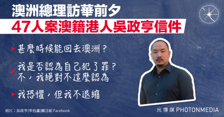 澳洲總理訪華前夕 47人案澳籍港人吳政亨信件:甚麼時候能回去澳洲?