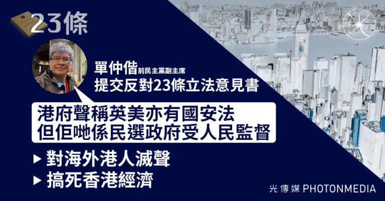單仲偕提交反對23條立法意見書|反駁港府稱英美亦有國安法 對海外港人滅聲 搞死香港經濟
