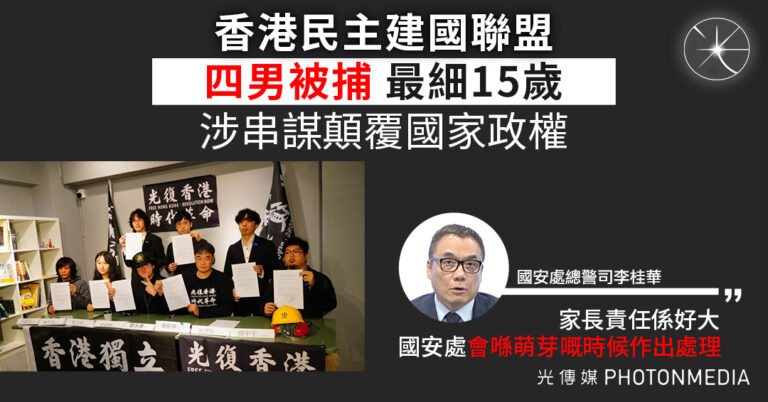 國安處前日拘捕4名「香港民主建國聯盟」成…