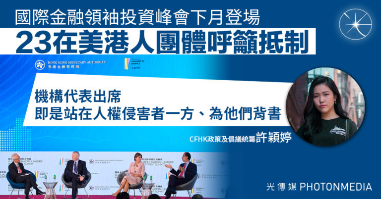 國際金融領袖投資峰會|三海外港人組織聯合聲明 指金融高管參與等同支持香港獨裁政權