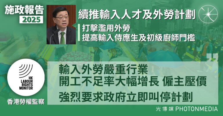 港府先後推出多個輸入外勞計劃,《光傳媒…