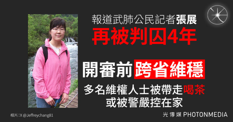 報道武肺公民記者張展 再被判囚4年 多國政府、人權組織要求將其釋放