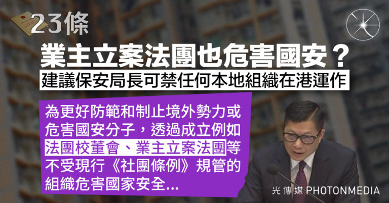 業主立案法團也危害國安? 建議保安局長可禁任何本地組織在港運作