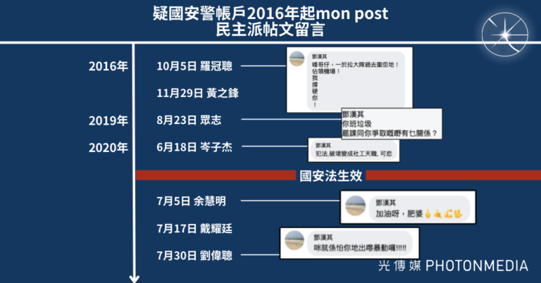 疑國安警帳戶2016年起民主派帖文留言 辱余慧明「肥婆」 撐黃之鋒佔領機場
