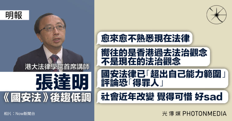 《明報》|港大法律學院首席講師張達明《國安法》後趨低調:愈來愈不熟悉現在法律