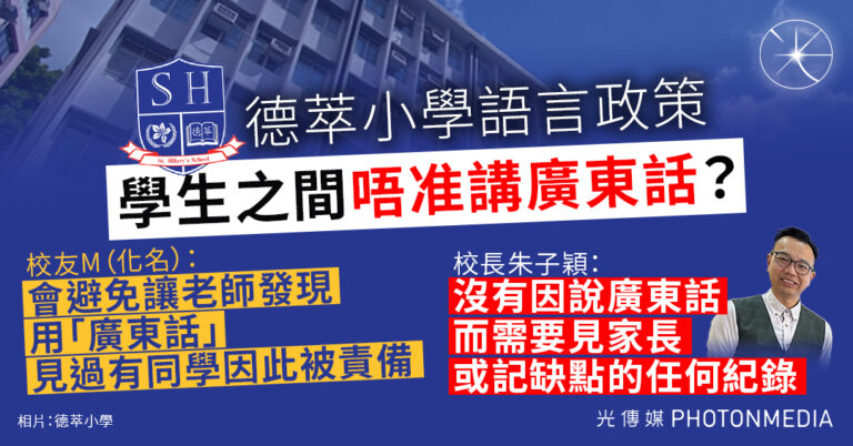 德萃學校校長受訪指學生之間「唔准講廣東話」 校方強調不會因講廣東話「受罰」但會「提醒」