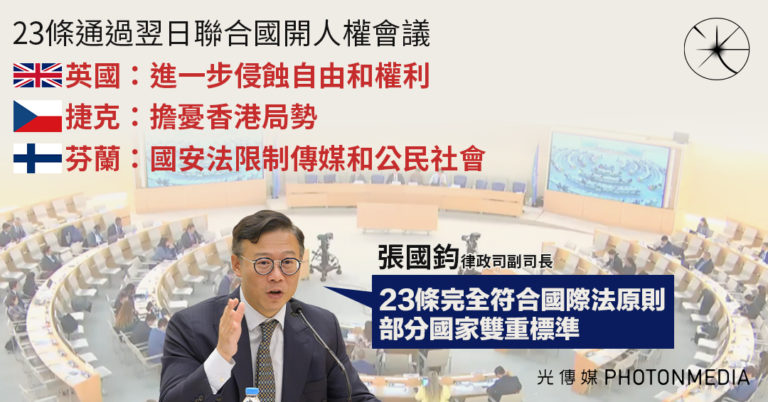 聯合國人權會議 英國:23條進一步侵蝕自由 捷克:擔憂港局勢 張國鈞:部分國家雙重標準