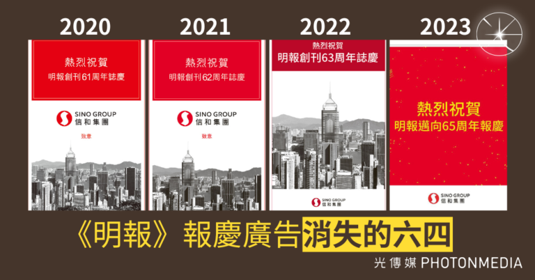 《明報》踏入64周年 報慶廣告六四用字全消失