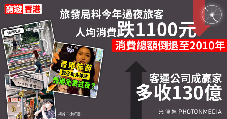 旅發局料今年過夜旅客人均消費跌1100元 消費總額倒退至2010年 窮遊下客運公司成贏家多收130億