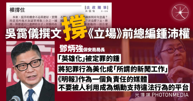 吳靄儀撰文「撐」《立場》前總編鍾沛權 鄧炳強批「英雄化」鍾 將犯罪行為美化成「新聞工作」