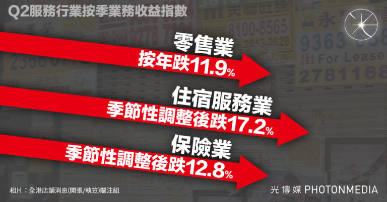 零售業業務收益指數按年大跌11.9% 季節性調整後住宿服務業跌17.2% 保險業跌12.8%