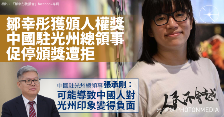 鄒幸彤獲頒人權獎 中國駐光州總領事促停頒獎遭拒