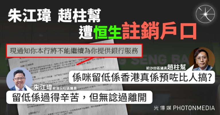 前區議員朱江瑋及趙柱幫先後遭恒生銀行註…