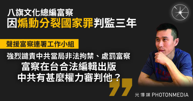 八旗文化總編富察 因「煽動分裂國家罪」判監三年 聲援小組:強烈譴責