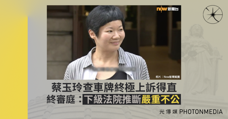 蔡玉玲查車牌終極上訴得直 終審庭:下級法院推斷嚴重不公