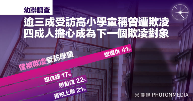 幼聯調查〡逾三成受訪高小學童稱曾遭欺凌 四成人擔心成為下一個欺凌對象